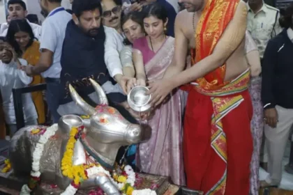 उज्जैन। फिल्म धुरंधर से पहचान बनाने वाली अभिनेत्री Sara Arjun शनिवार तड़के उज्जैन स्थित विश्व प्रसिद्ध Shri Mahakaleshwar Temple में भगवान महाकाल के दर्शन करने पहुंचीं।सुबह करीब 4 बजे सारा अर्जुन ने प...